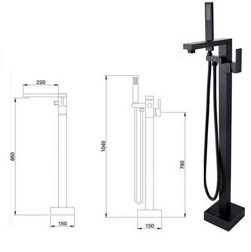 › Vòi sen tắm bồn nóng lạnh mạ vàng 1 chân giáng vuông đen