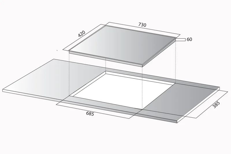- Kích thước (dài x rộng x cao): 730x420x60mm