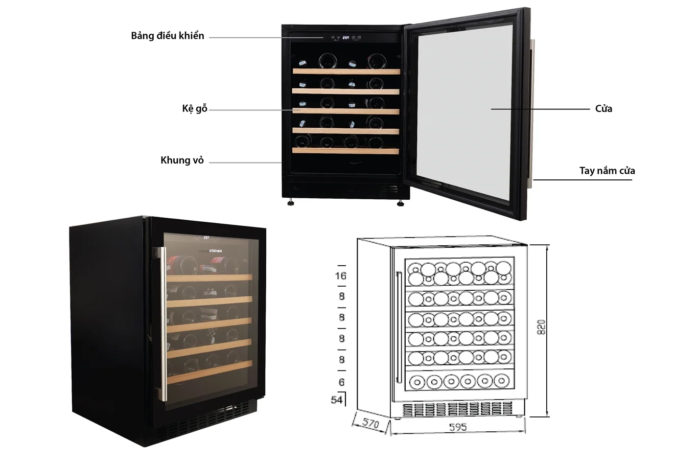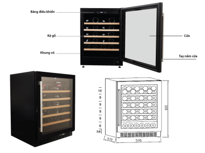 Sức chứa: 54 chai (Tiêu chuẩn Bordeaux 750ml).