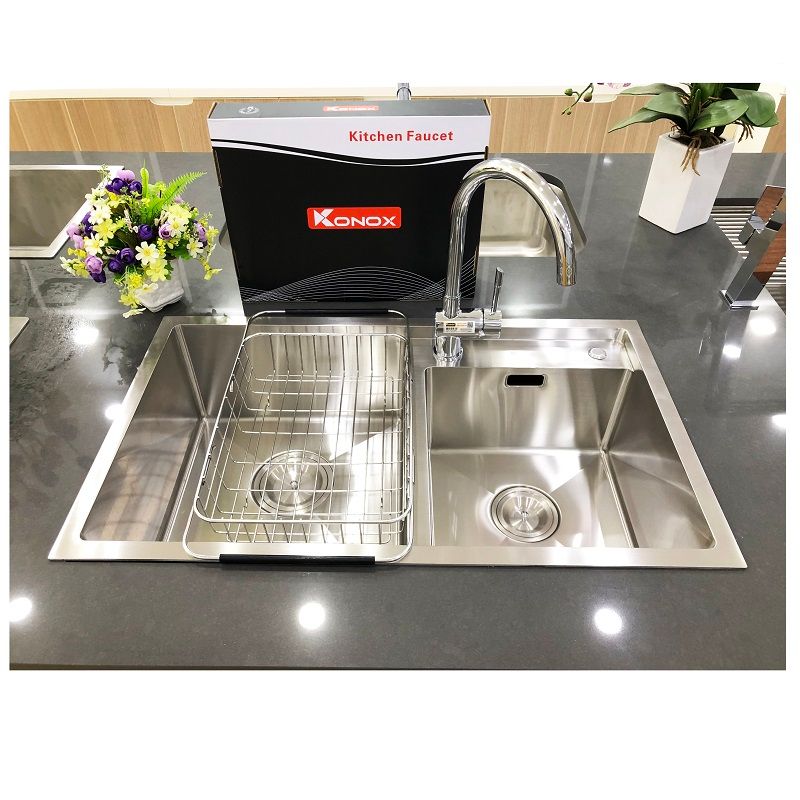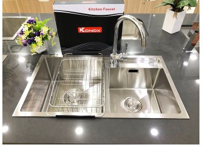 Model KN8248DO thuộc dòng sản phẩm Overmount Series của Konox. Overmount Series hướng tới phân khúc trung cấp của thị trường nhưng vẫn được sử dụng nguyên liệu thép không gỉ 304 tiêu chuẩn đồng bộ như các sản phẩm trong bộ sưu tập chậu rửa bát Konox. Chậu được sản xuất theo công nghệ bán thủ công với độ dày lớn, hố chậu to và sâu giúp tăng thêm diện tích thao tác. KN8248DO được thiết kế một hố to một hố bé giúp người dùng linh hoạt trong việc lựa chọn hố để thao tác rửa tiết kiệm nước và hiệu quả hơn. Điều đặc biệt đối với sản phẩm này là khách hàng có thể tùy chỉnh phong cách lắp đặt âm hoàn toàn hoặc đặt mặt trên bàn đá dễ dàng.