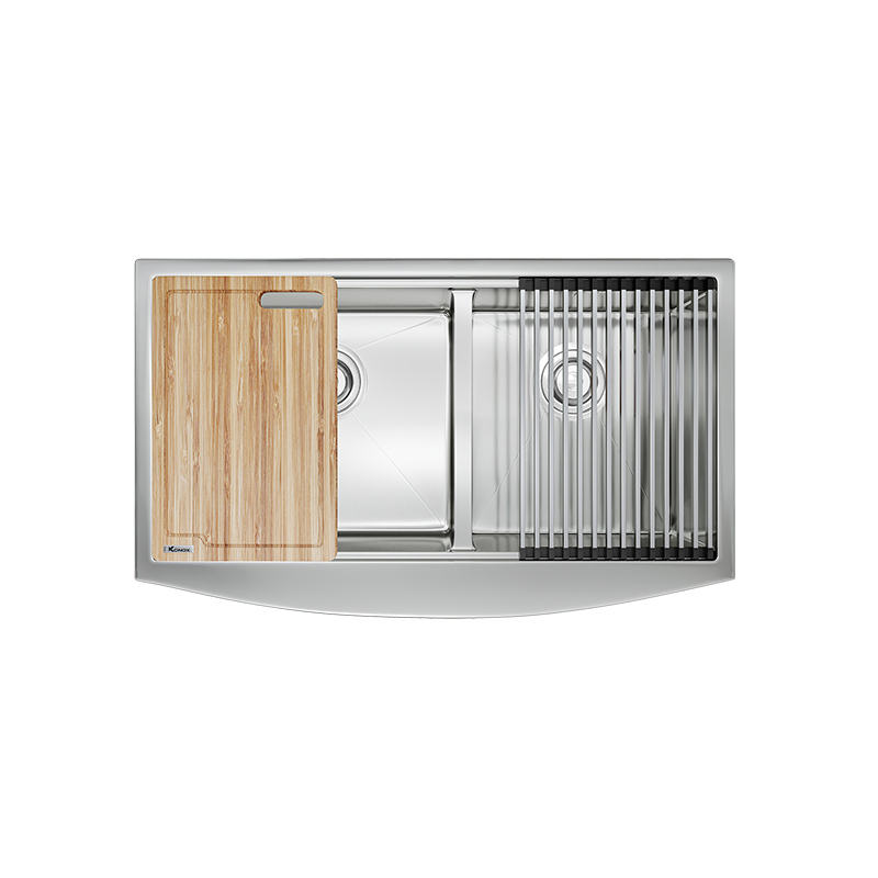 Workstation – Apron Sinks (hay còn gọi Farmhouse Sinks) – dòng sản phẩm được Konox lấy cảm hứng, phát triển từ căn bếp nông trại nơi miền quê yên bình của Pháp, Ý, Anh,…- gian bếp là trái tim của ngôi nhà phong cách đồng quê.