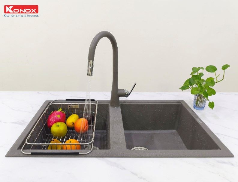 Chậu rửa bát đá Phoenix 860 Grey nằm trong bộ sưu tập chậu vòi đá cao cấp của Konox – Kiệt tác Ý trong lòng bếp Việt