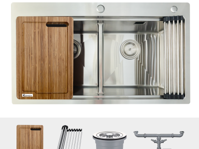 - Điểm khác biệt ấn tượng của Model KN8850TD: Là tích hợp công năng nhờ công nghệ thủ công tạo gờ hai bên cho phép tích hợp các phụ kiện đi kèm, giúp ích cho người dùng trải nghiệm thao tác nhanh gọn ngay trên mặt chậu. Model KN8850TD có kích thước rửa khá thoải mái, đây là kích thước lớn phù hợp cho khoang tủ bếp 900mm và là sự lựa chọn đáng tiền đối với gian bếp hiện đại.