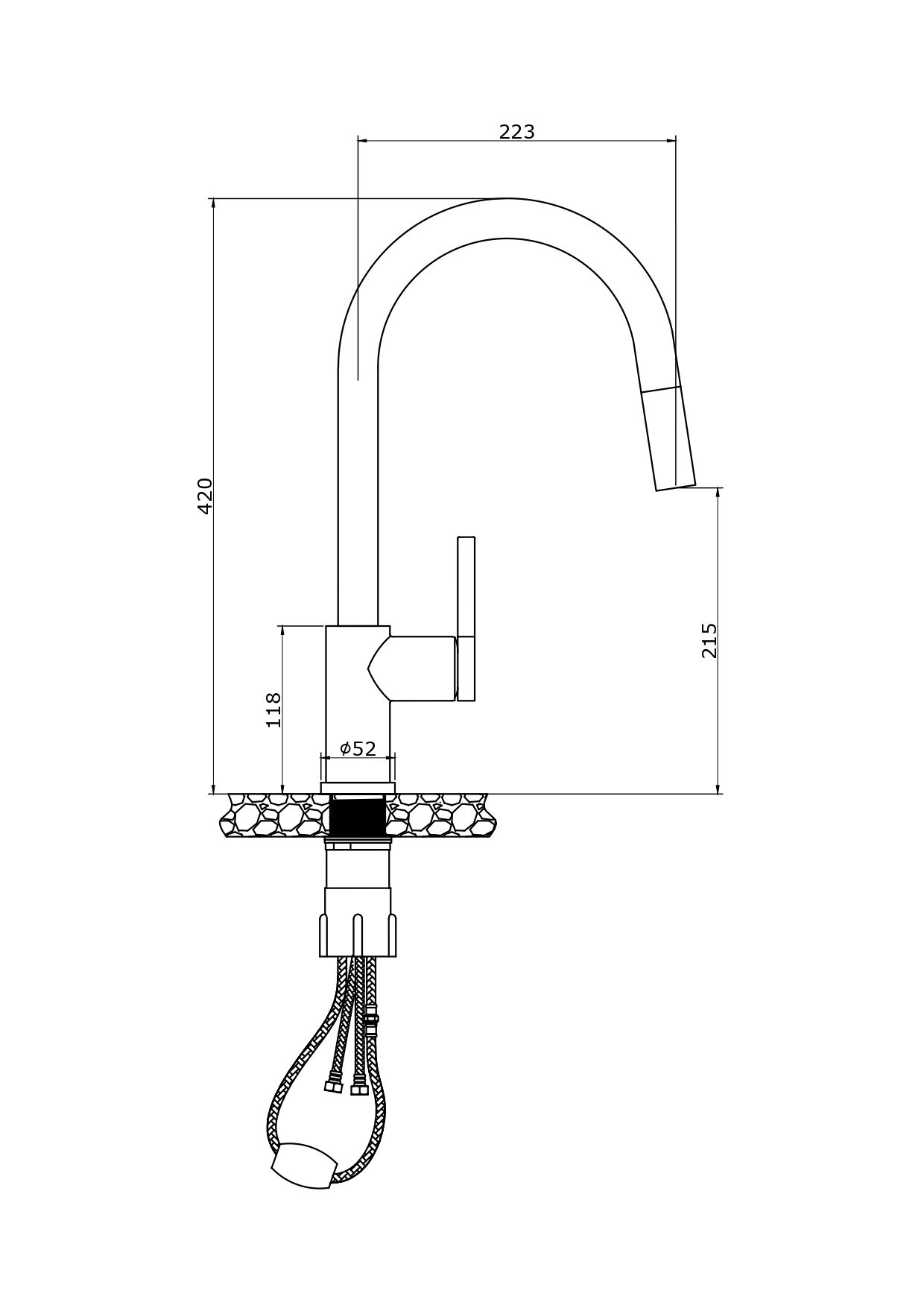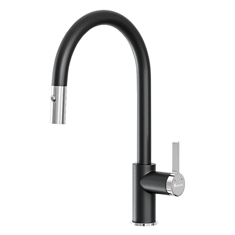 - Vòi rửa bát dây rút Alto Black 2 đường nóng lạnh