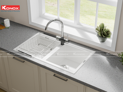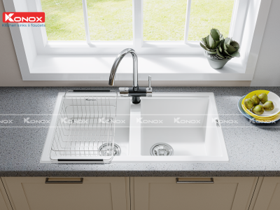 - Vòi rửa bát 3 đường nước: 2 đường nóng lạnh + 1 đường kết nối với máy lọc nước uống RO