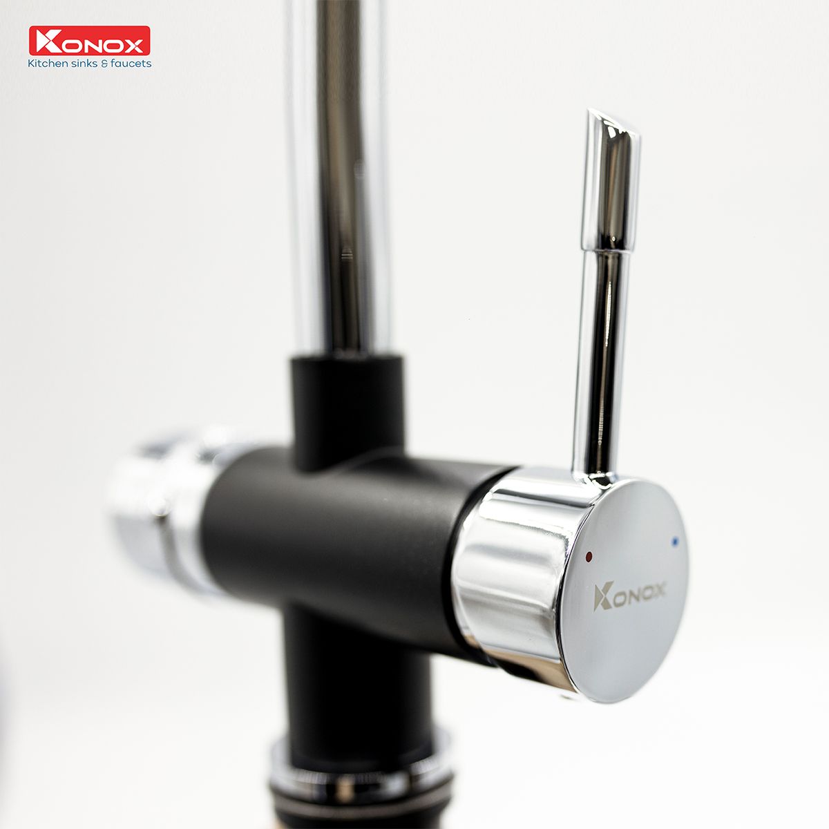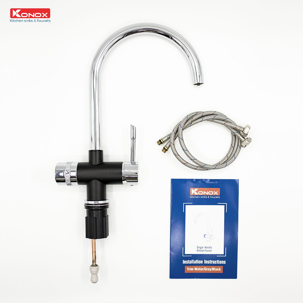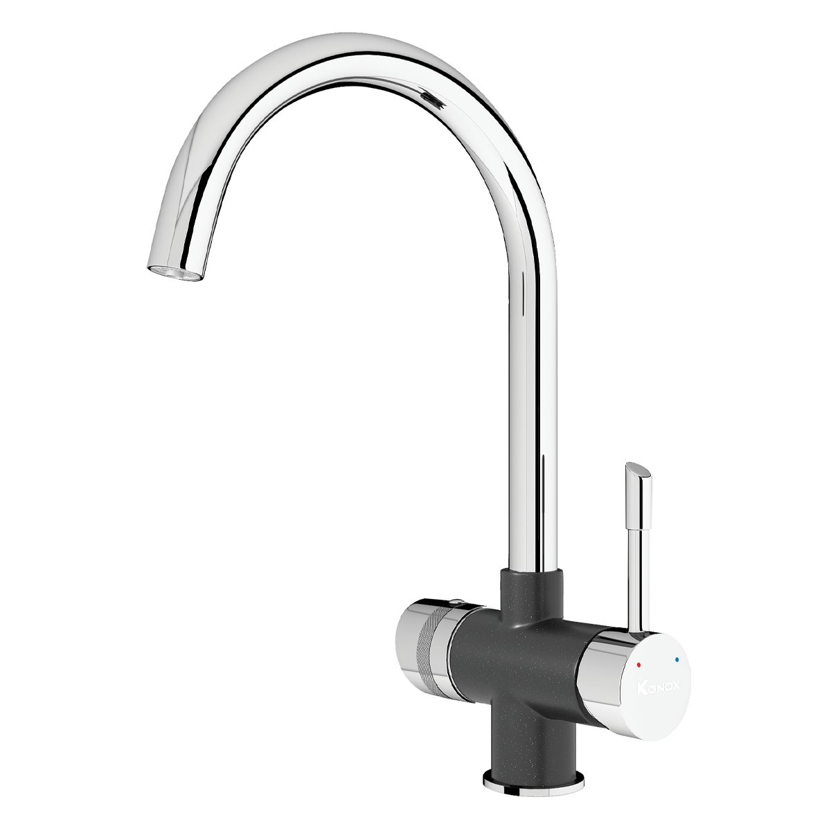 Lấy cảm hứng từ kiệt tác kiến trúc mái vòm, Vòi rửa bát ba đường nước RO TRIM-WATER Black mang đường nét vòng cung, kiểu dáng thanh lịch, đem lại hơi thở trang nhã cho mọi căn bếp sở hữu thiết bị. Bằng trang bị 3 đường nước tích hợp 2 đường nóng lạnh + 1 đường kết nối tương thích với các máy lọc RO nhằm tối ưu diện tích bàn bếp chuẩn bị – đây khẳng định là chuẩn mực thiết kế cho một gian bếp tối giản, hiện đại và tiện ích.