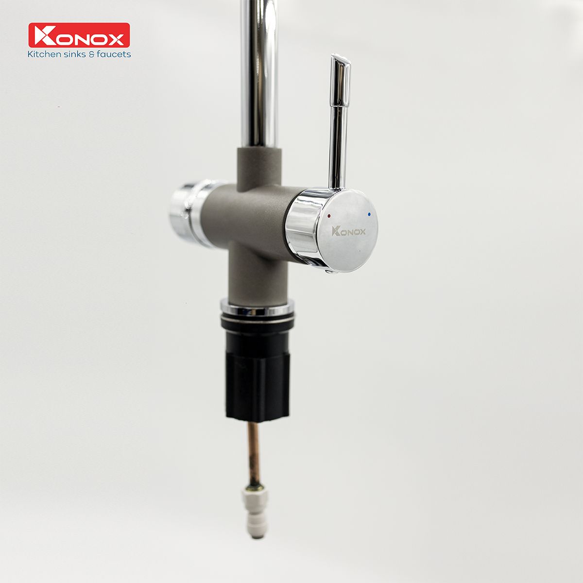 - Vòi rửa bát 3 đường nước: 2 đường nóng lạnh + 1 đường kết nối với máy lọc nước uống RO