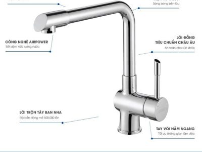 Hình dáng: Vòi thiết kế bo tròn, đầu vòi ngang. Tay vòi ngang