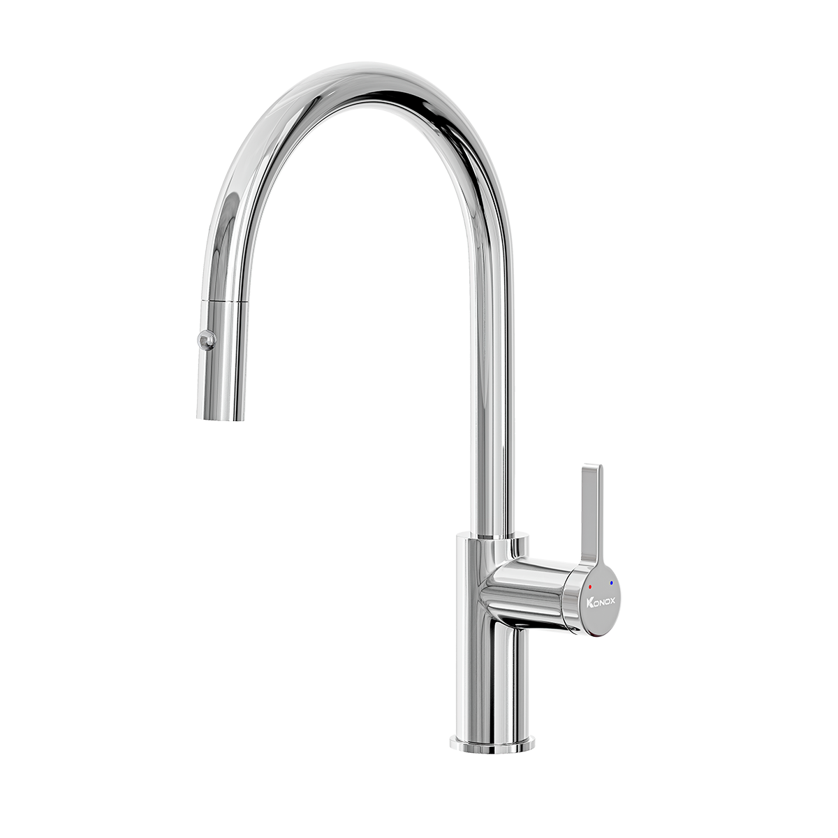 – Chức năng: Nóng lạnh + Rút dây + Đầu vòi khớp xoay + 2 chức năng Sprayer (Dòng chảy phun mưa, tạo bọt khí) + Xoay 360 độ