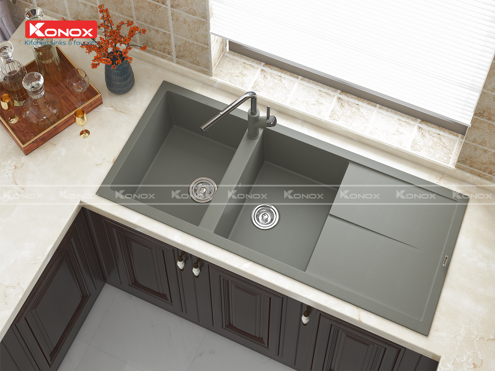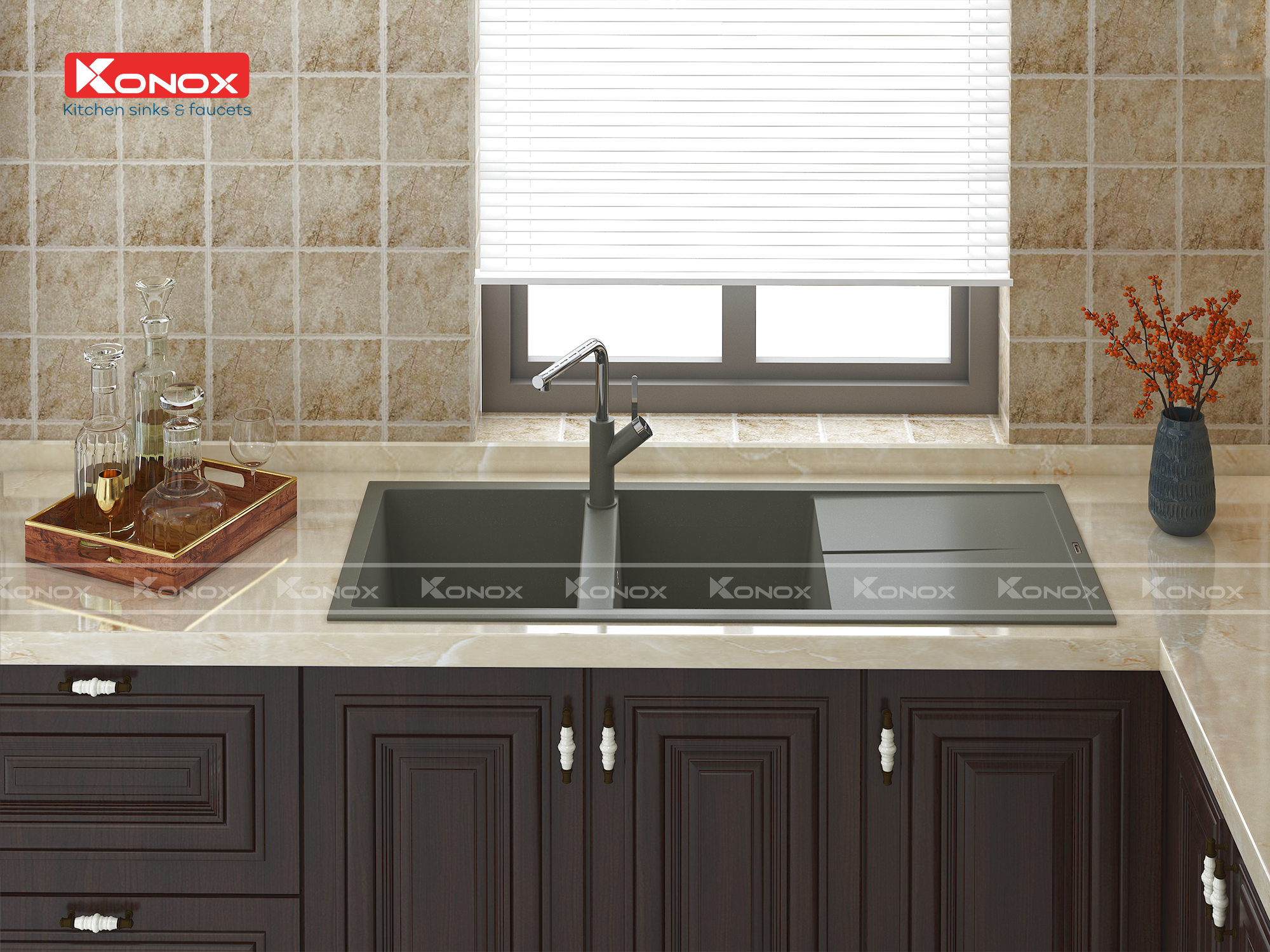 Chậu rửa 2 hố có bàn phải kobesi kb 10045 304