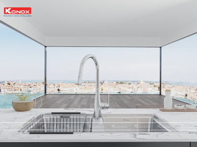 - Tay vòi ngang tối ưu không gian bàn bếp