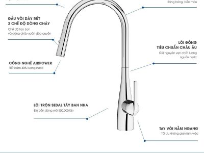 - Thân vòi xoay 360 độ cho phạm vi tiếp cận lớn