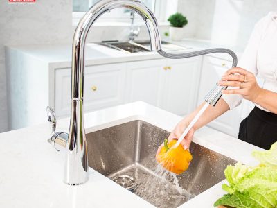 - Tay vòi ngang tối ưu không gian bàn bếp