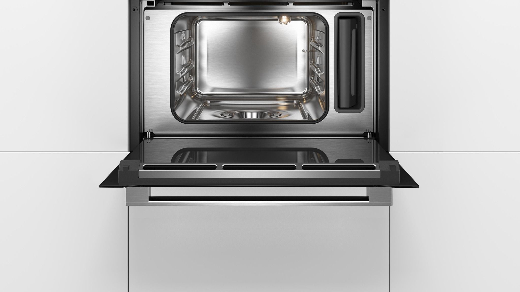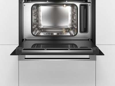 Cửa lò hấp Bosch CDG634AB0 giờ đây trở nên tiện lợi hơn bao giờ hết: Cơ chế giảm chấn đặc biệt giúp cửa lò không bị đóng mạnh. Khi bạn nhẹ nhàng đẩy cửa đóng lại, cửa sẽ dừng lại ngay trước khi đóng và sau đó tự đóng một cách nhẹ nhàng và yên tĩnh, do đó đảm bảo tuổi thọ lâu dài cho cả lò và cửa lò của bạn.