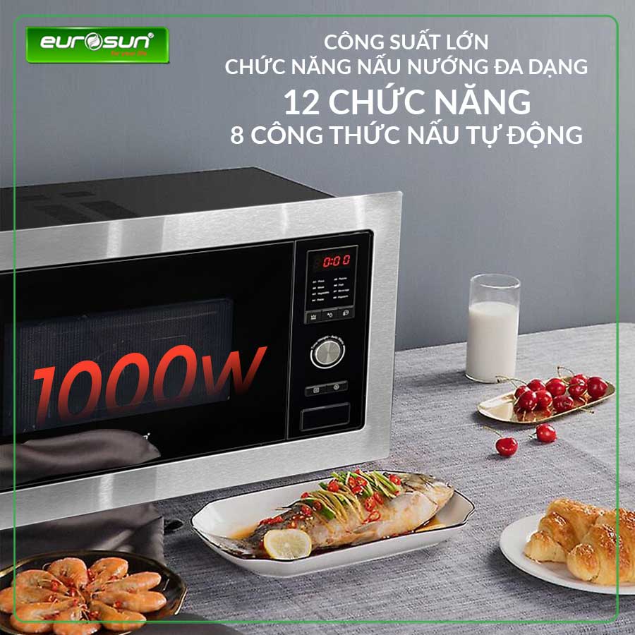 Lò vi sóng Eurosun MWO-28EUR nhập khẩu nguyên chiếc từ Malaysia là sản phẩm lò vi sóng cao cấp 2 trong 1 (vi sóng và nướng kết hợp) dung tích 25L phù hợp sử dụng cho đại đa số gia đình Việt. Với thiết kế sang trọng, sử dụng vật liệu cao cấp nhất trong ngành thực phẩm là Inox 304 (18/10) kết hợp kính cường lực đen chống bám bẩn và vân tay, tạo vẻ ngoài sang trọng và cuốn hút.
