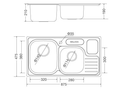 - Kích thước: 875D x 475R