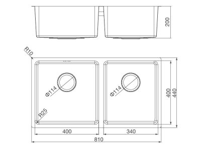 - Kích thước lỗ đá: Lắp dương: 785D x 415R; Lắp âm: 770D x 400R (R25)
