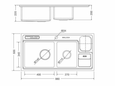 - Kích thước: 980D x 500R