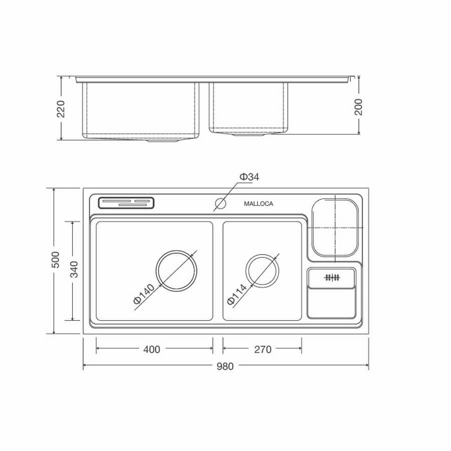 - Độ sâu bồn: 220 mm