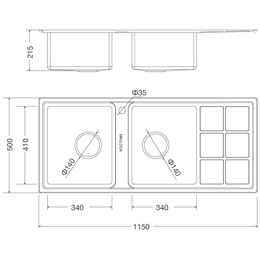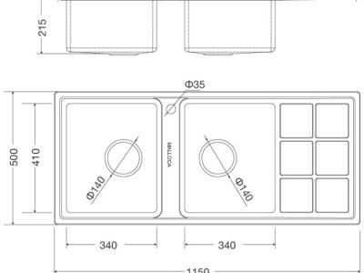 - Độ sâu bồn: 215 mm
