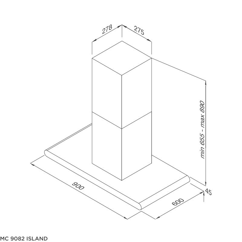 Kích thước Hút mùi đảo Malloca MC9082 Island