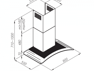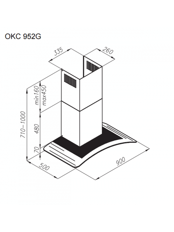 – Máy hút mùi Amica OKC952G thiết kế áp tường – Kính cong