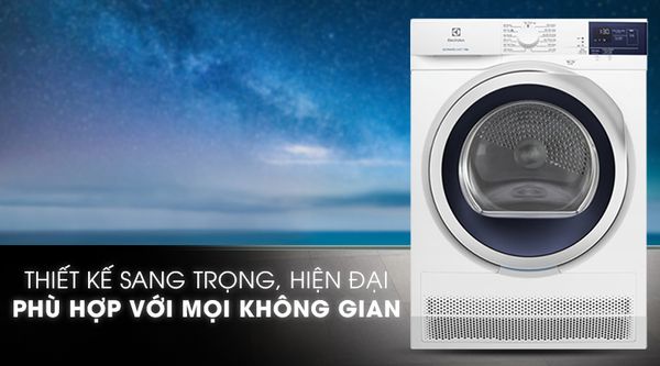 Máy sấy Electrolux 8 kg EDC804CEWA có thiết kế cửa trước hiện đại, đường nét tinh tế cùng gam màu trắng thanh lịch, phù hợp với mọi không gian nội thất trong nhà bạn.