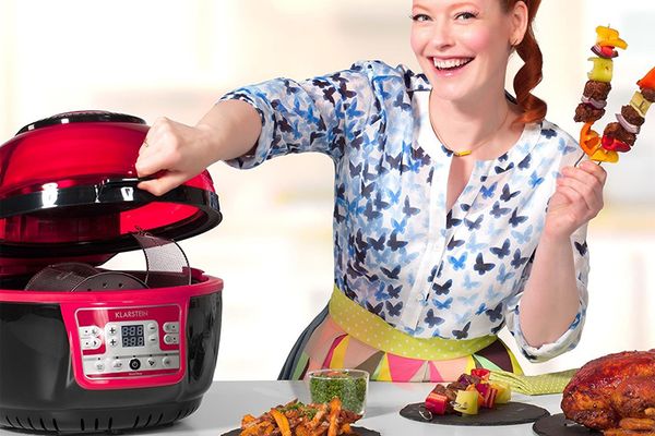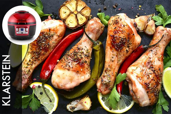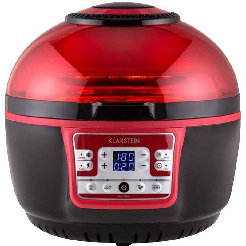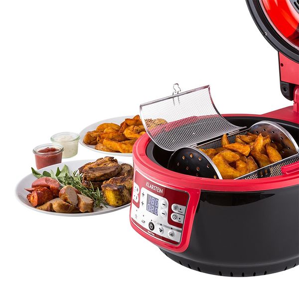 Nồi chiên rán Klarstein được thiết lập với 8 chương trình cài đặt sẵn: Chương trình nhanh, chiên gà – cá – thịt – BBQ, nướng trong lòng (khoai tây chiên), Baking, Pizza, Steak, xiên, chuyển các chức năng quay. Người dùng có thể chọn 1 trong các chức năng này, sau đó chọn thời gian và nhiệt độ. Với bảng điều khiển chuyển xuống thân nồi thay cho trên nắp nồi (khu vực tạo khí nóng), giúp tạo sự thẩm mỹ cho sản phẩm và màn hình LCD độ phân giải cao.