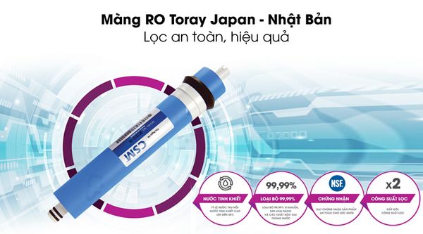 Máy lọc nước RO với màng lọc RO Toray Japan (Nhật Bản) chất lượng tốt, tuổi thọ cao, lọc hiệu quả