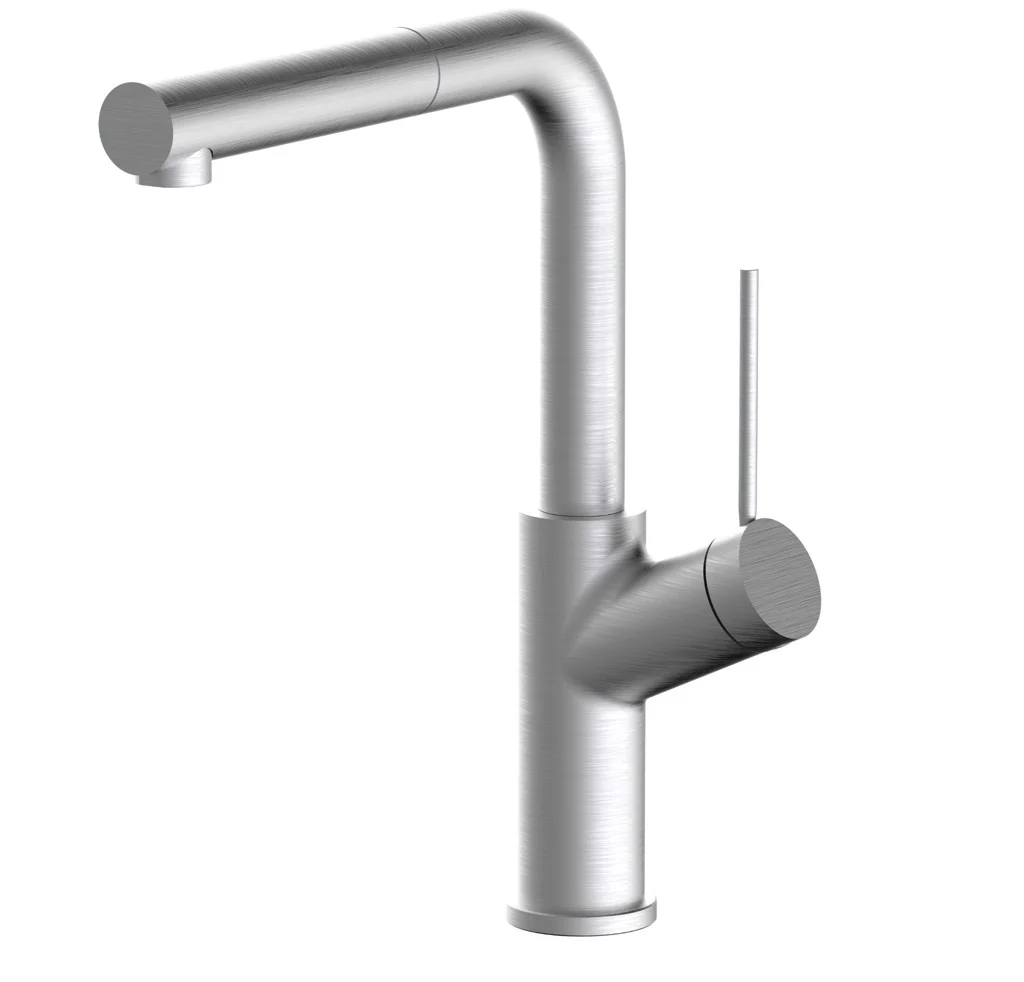 Chất liệu: INOX XƯỚC – Kiểu vòi: Nóng/lạnh – USP: Có thể xoay 360°. – Đầu vòi có thể kéo dài- Vòi nhà bếp, dạng vuông, model FIVA D3, có rút, màu inox xước