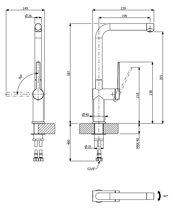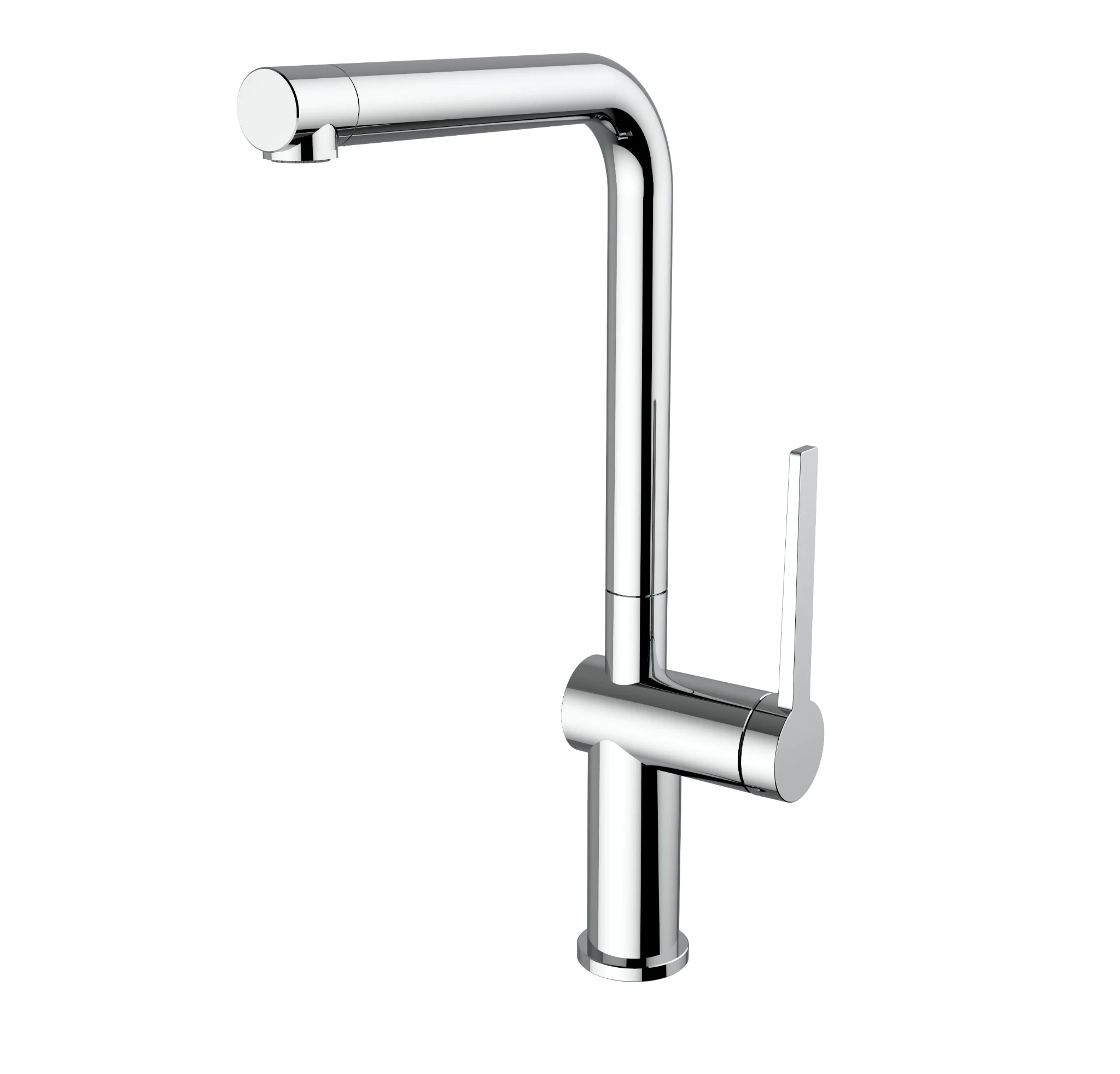 Chất liệu: Đồng mạ Chrome – Kiểu vòi: Nóng/lạnh – USP: Có thể xoay 360°- Vòi nhà bếp, dạng vuông, model FUSTO A không rút, màu chrome