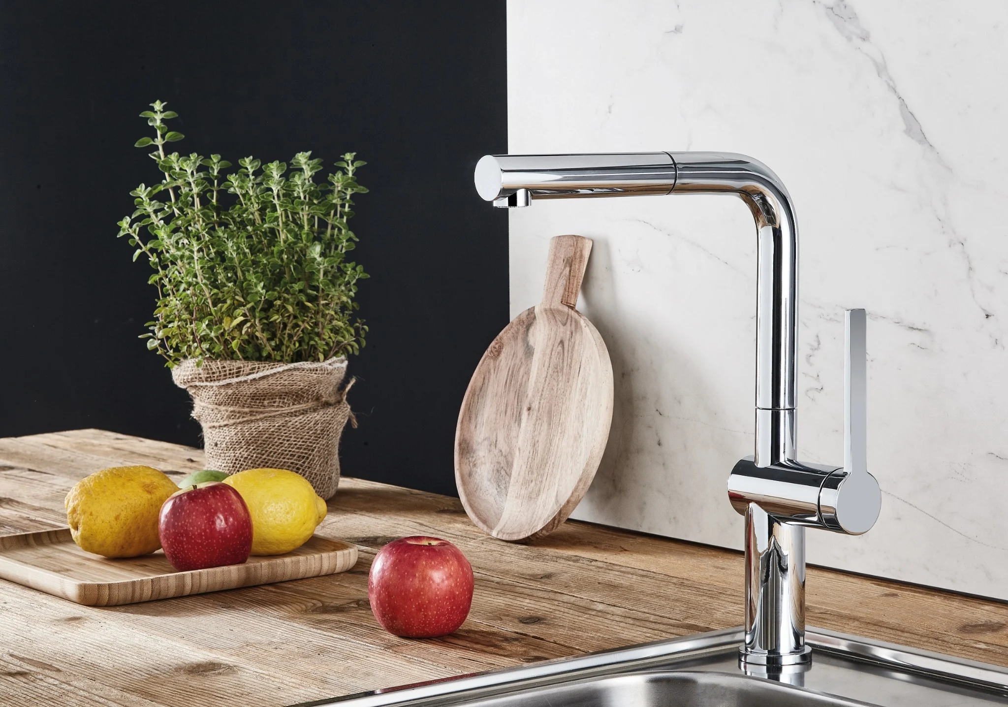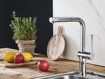 – Chất liệu: ĐỒNG MẠ CHROME – Kiểu vòi: Nóng/lạnh – USP: Có thể xoay 360°. – Đầu vòi có thể kéo dài- Vòi nhà bếp, dạng vuông, model FUSTO D3, có rút, màu chrome-