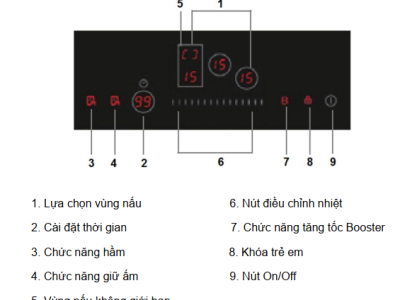 - Vùng nấu nhỏ nhất : 14cm Công suất 1400W (Booster 1800W)