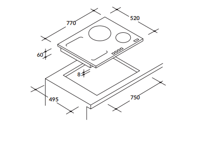 - Kích thước bếp : D770 x R520mm