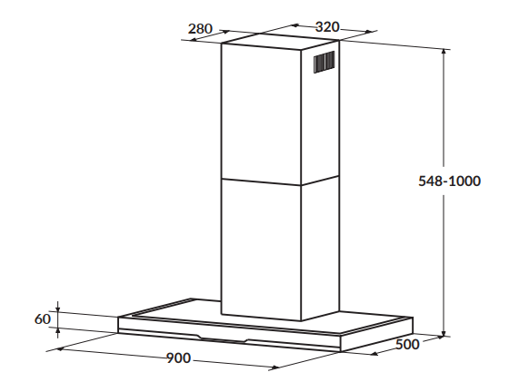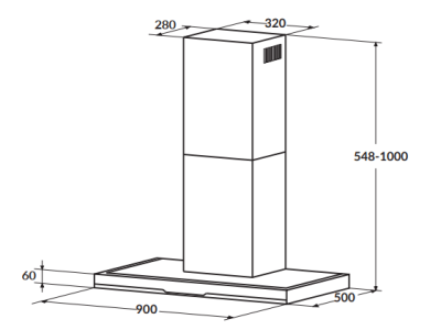 - Kích thước (DxRxC): 900x500x548/1000 mm