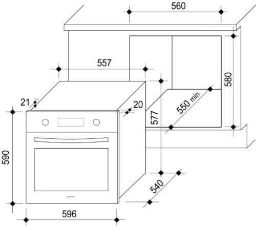 - Kích thước lò: R596xS540xC590mm