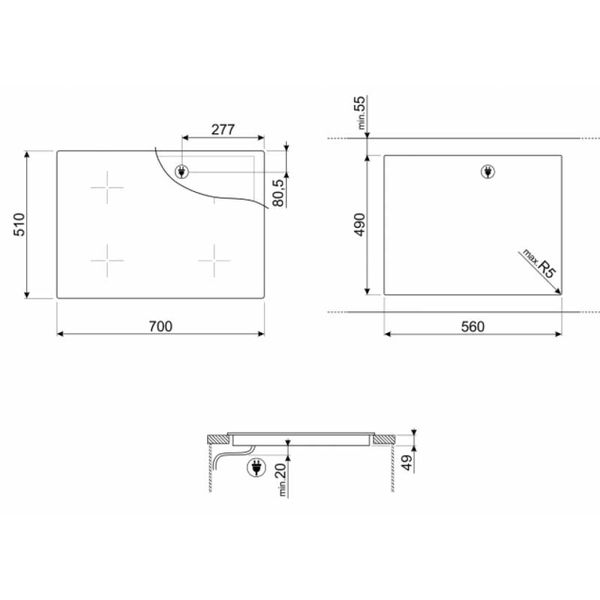 Thông số vùng nấu bếp từ 3 vùng nấu SMEG SI1M7733B