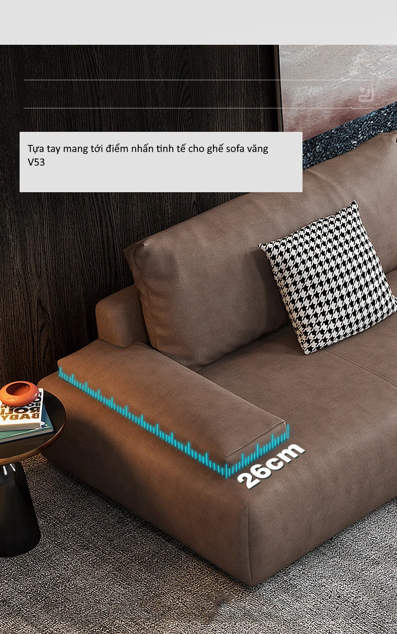 Sản phẩm được chế tác với sự tận tâm và kiểm soát chất lượng nghiêm ngặt từ quy trình sản xuất đến gia công cuối cùng. Chất liệu da lộn được lựa chọn kỹ lưỡng, đảm bảo độ bền và tuổi thọ cao, giúp ghế sofa V53 làm nổi bật trong thời gian dài.
