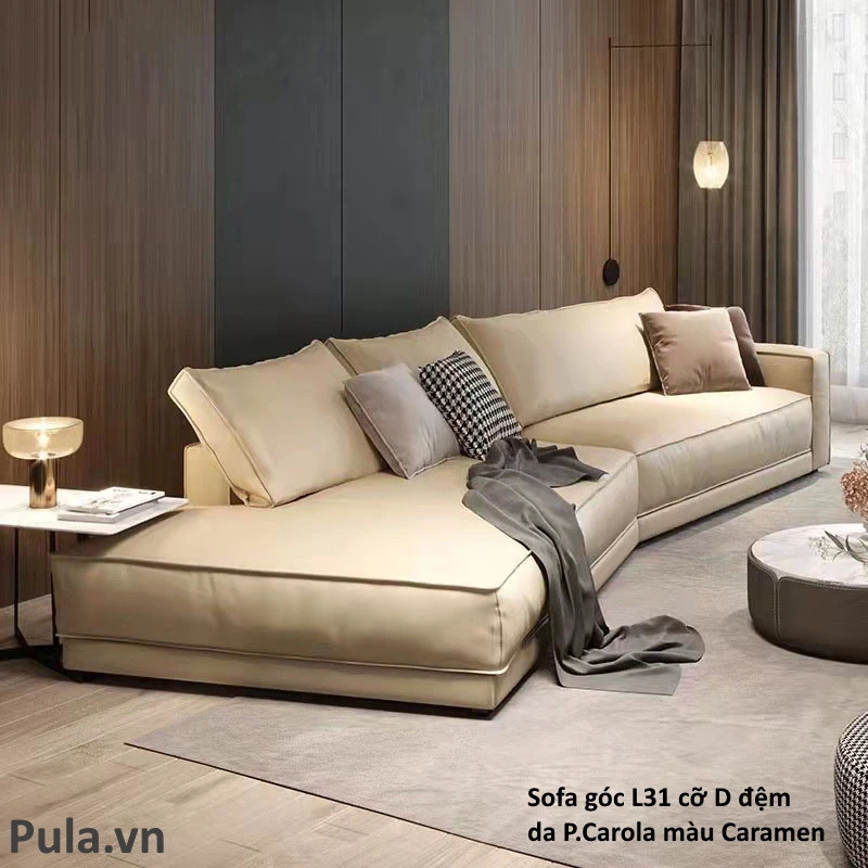 Sofa góc đệm da dáng cong L31 với chất liệu, kích thước và thiết kế thông minh, đáp ứng tốt nhu cầu trang trí và sử dụng của khách hàng. Với đặc tính bền bỉ, thoải mái và sang trọng, sản phẩm này là lựa chọn hoàn hảo cho mọi không gian sống.