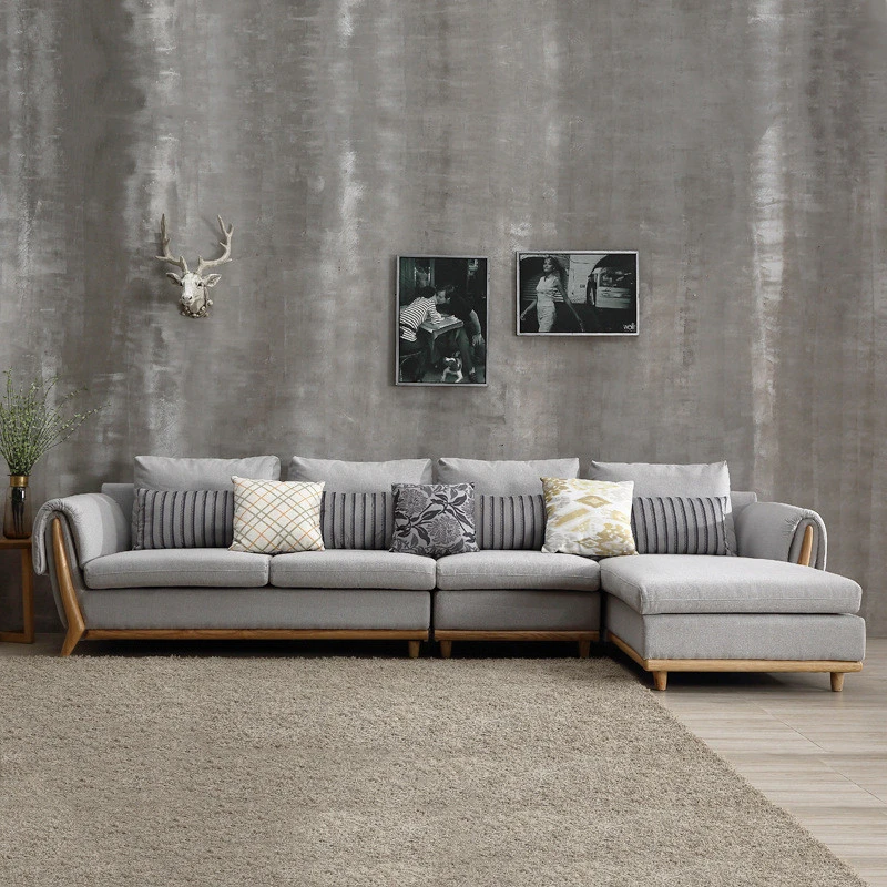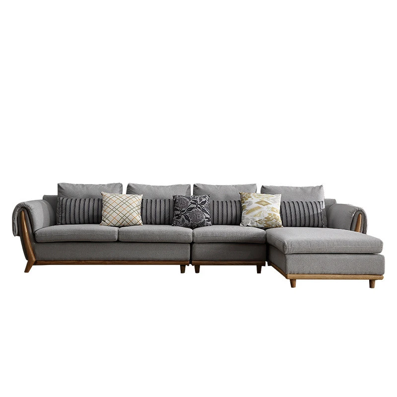 Khám phá sự sang trọng và tiện nghi của ghế Sofa góc đệm vải viền da gỗ sồi L22