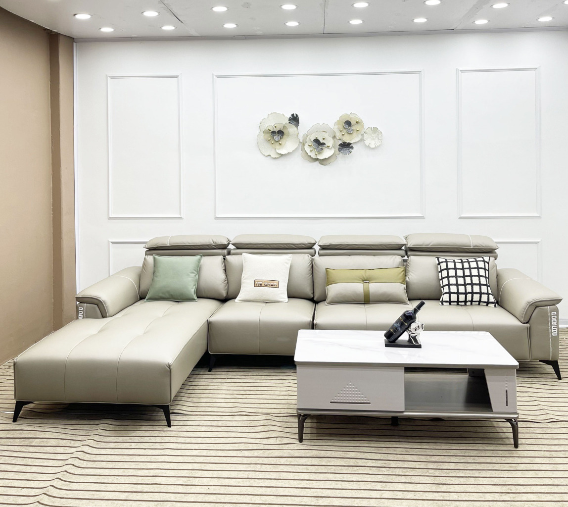 Không chỉ vậy, chất liệu da PU còn được xử lý đặc biệt để thoáng khí, kháng nấm, chống tia UV, chống cháy, chống trầy. Điều này không chỉ bảo vệ ghế sofa khỏi ánh nắng mặt trời gây phai màu, mà còn đảm bảo an toàn trong trường hợp có xảy ra nguy cơ cháy nổ. Điều này cho phép khách hàng yên tâm sử dụng sản phẩm dưới ánh sáng mạnh và tạo điểm nhấn an toàn cho không gian sống. Màu sắc xám bóng bẩy của ghế sofa này tạo nên sự sang trọng và lịch lãm. Với gam màu ấm nên sản phẩm dễ dàng kết hợp với nhiều phong cách trang trí khác nhau, từ hiện đại đến cổ điển. Bề mặt da bóng bẩy mang lại vẻ đẹp sang trọng và thể hiện sự chất lượng cao của sản phẩm.