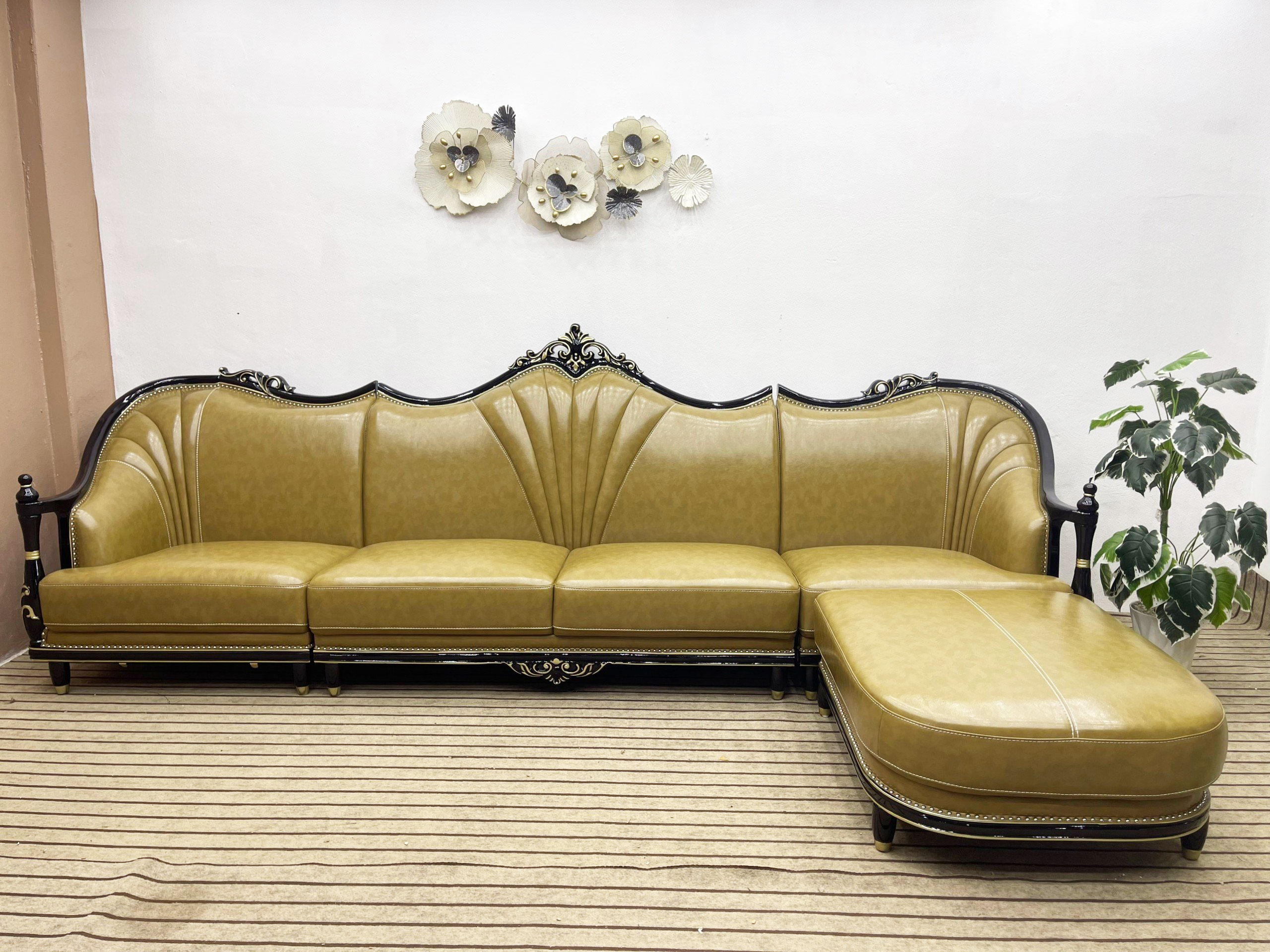 - Chất liệu: da công nghiệp PU cao cấp, viền gỗ sồi Mỹ.