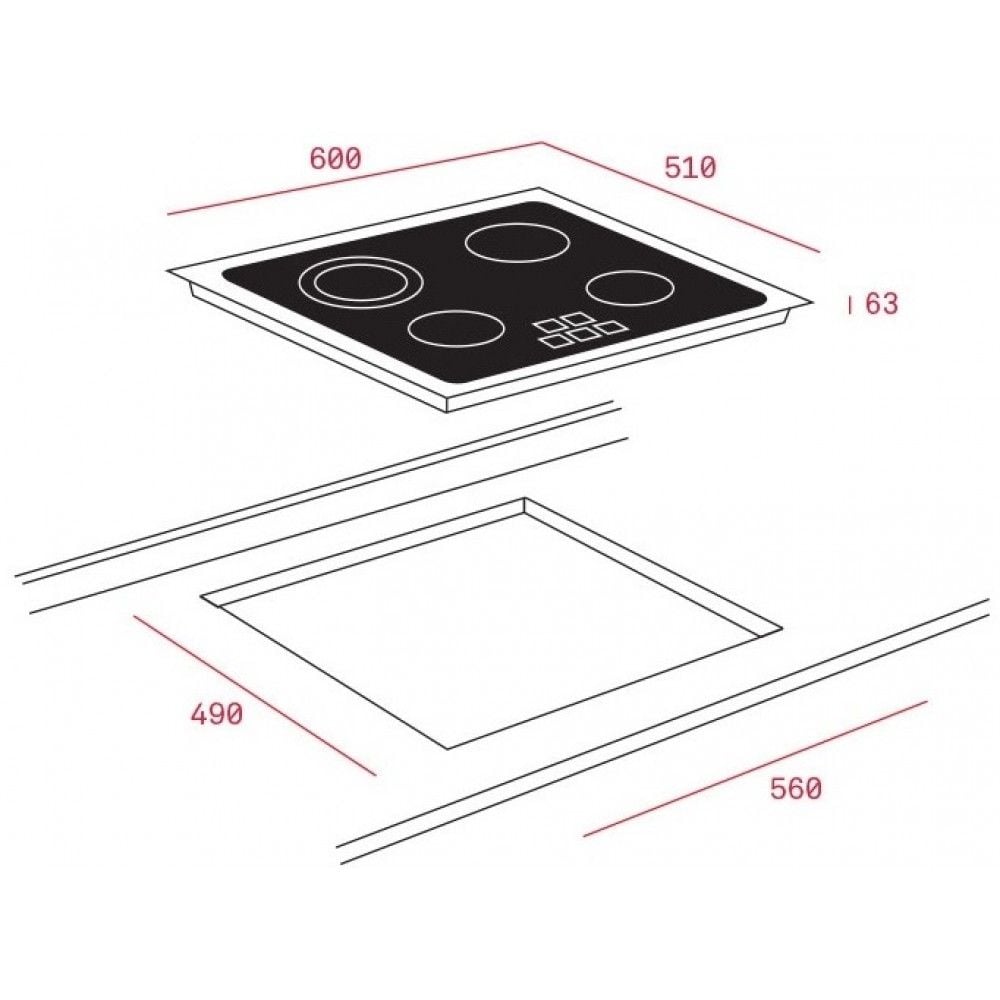 - Mặt kính Eurokera vát cạnh trước, chịu lực, chịu nhiệt tốt, dễ dàng vệ sinh