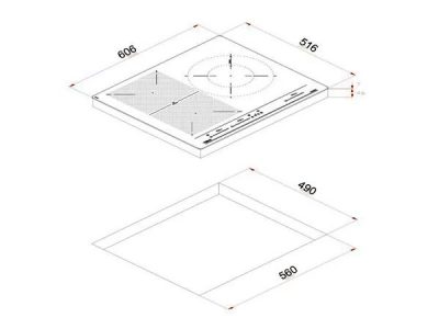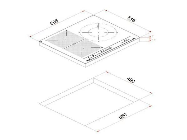 - 03 vùng nấu: 1 vùng nấu lớn Ø 280 và 02 vùng oval 230 x189mm