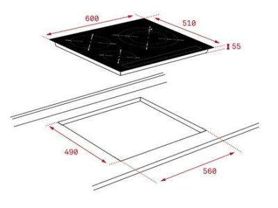 - Bếp từ 3 vùng bếp nấu: 1 bếp có vòng nhiệt Ø 190/300mm; 1 bếp có vòng nhiệt Ø 210mm; 1 bếp có vòng nhiệt Ø 145mm