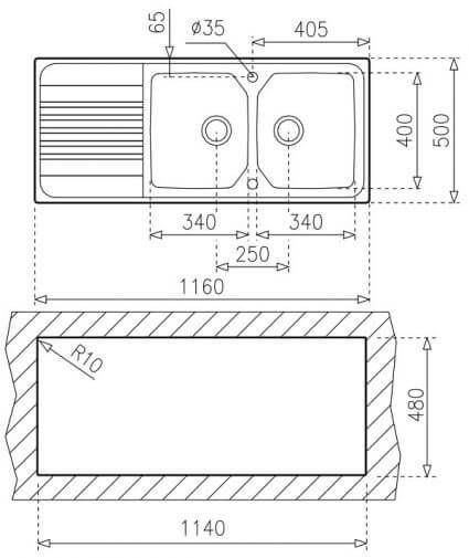 - Kích thước hố chậu (D x R): 340 x 400 mm