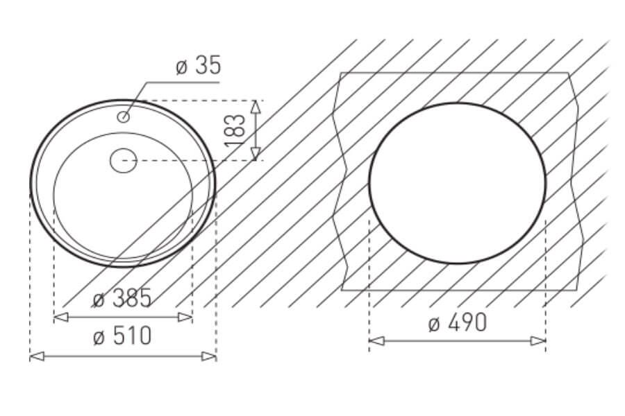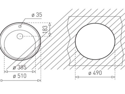 - Kích thước bồn (Ø): 385 mm