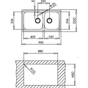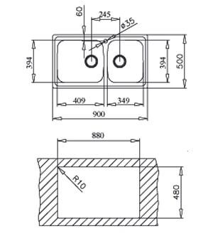 - Kích thước bồn (D x R x S): 350 x 394 x 200 mm / 409 x 394 x 220 mm