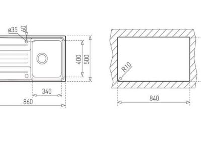 - Kích thước hố chậu: 340 x 400 x 180 mm