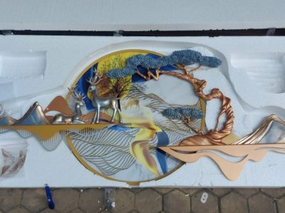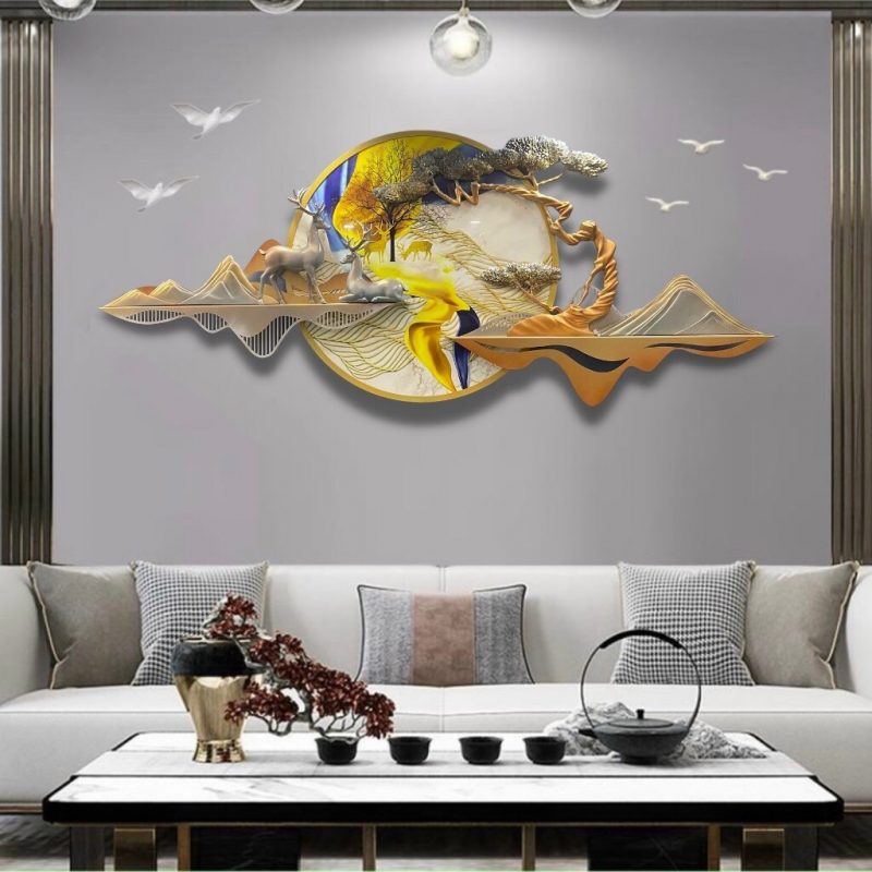 Là Tranh phù điêu Gốm kết hợp cùng sắt nghệ thuật, được thiết kế và lấy ý tưởng từ khung cảnh thiên nhiên đầy bình yên và lãng mạn. Với điểm nhấn vô cùng nổi bật và bắt mắt chính là đôi tuần lộc mang nhiều ý nghĩa phong thủy đem lại may mắn, tài lộc, thăng tiến, sức khỏe cho gia chủ.